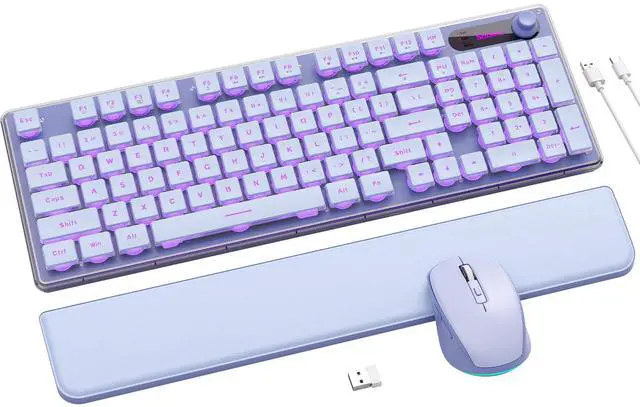 Wireless Keyboard and Mouse Combo - 9 Backlit Effects, Wrist Rest, Double-Shot Keycaps, Metal Panel, Long-Lasting Rechargeable, 2.4G Keyboard Mouse Set for Windows Mac PC Laptop Sablute (Purple)