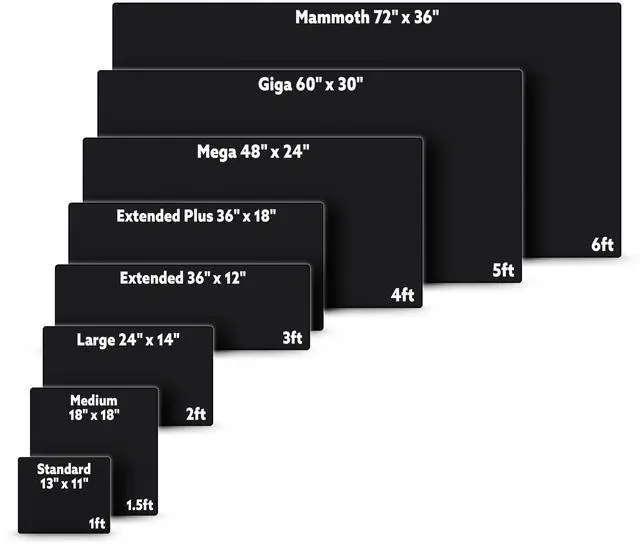 Choose from a variety of eight different mouse pad sizes to find the perfect fit for your desk. (The bigger sizes are great for gamers who use a lower DPI mouse setting and need more room to maneuver.)
