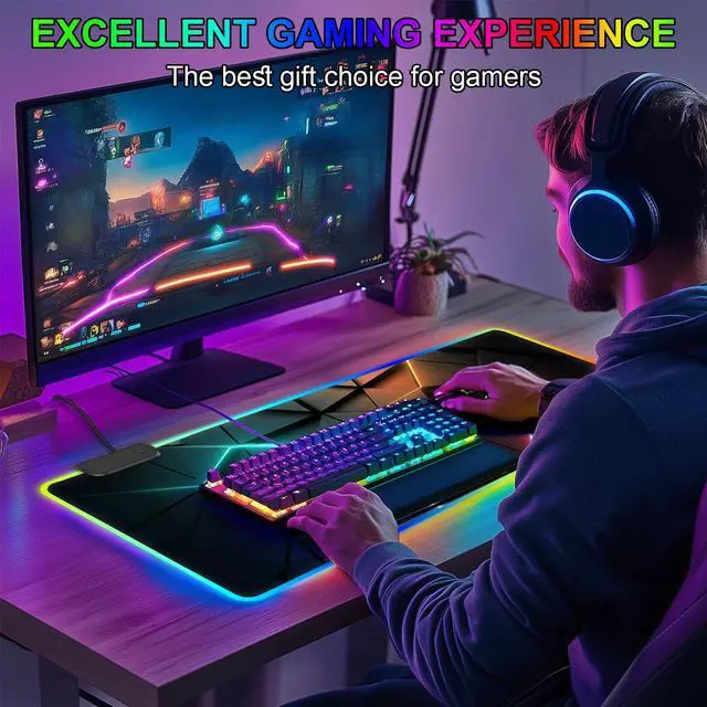 • Perfect SizeThe size of the oversized mouse pad is 31.5 x 11.8 inches (80X 30CM), with a thickness of 3mm/0.12IN. This gaming series RGB illuminated mouse pad is perfect for gaming enthusiasts or mechanical keyboards and mice or other gaming keyboards!