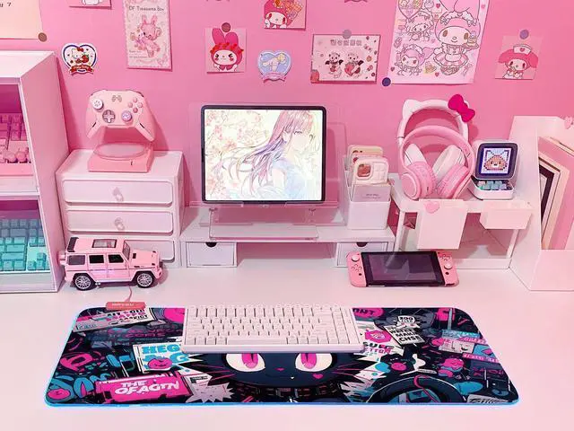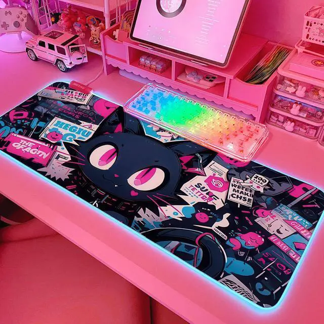 Pink RGB Gaming Mouse Pad 31.5 x12 Inch PC XL Large Extended Glowing Led Light Up Desk Pad Non-Slip Rubber Base Computer Cute Mousepad Mat Desk Accessories Gaming Setup 104