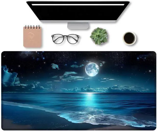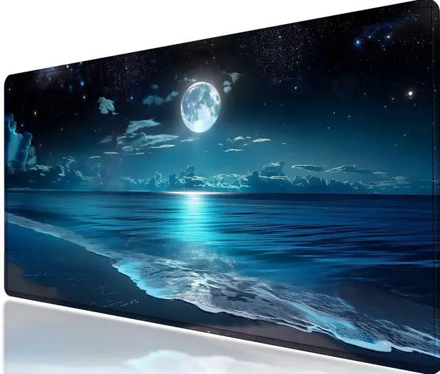 Moon Illuminating The Clear Blue Ocean Design Large Mouse pad,Large Extended Gaming Mouse Pad with Stitched Edges,Non-Slip Natural Rubber Base,Waterproof Computer Mouse Pad Keyboard Mat