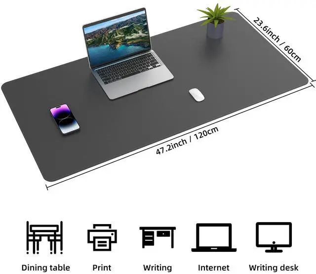 But that's not all – our desk mat is also waterproof and scratch-resistant, keeping your desk safe from moisture and scratches. With a super-sized 47.2 x 17-inch surface, it accommodates your laptop, mouse, and keyboard, and the smooth surface can be used as a mouse pad or for writing and painting. It's perfect for gamers, designers, and handcraft lovers.