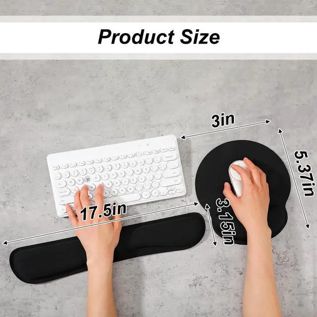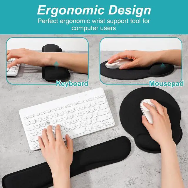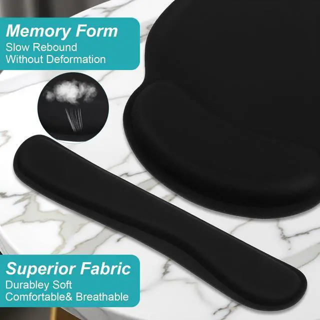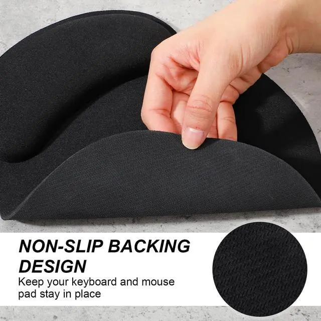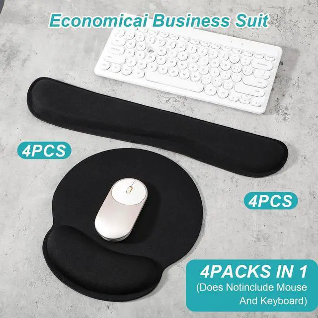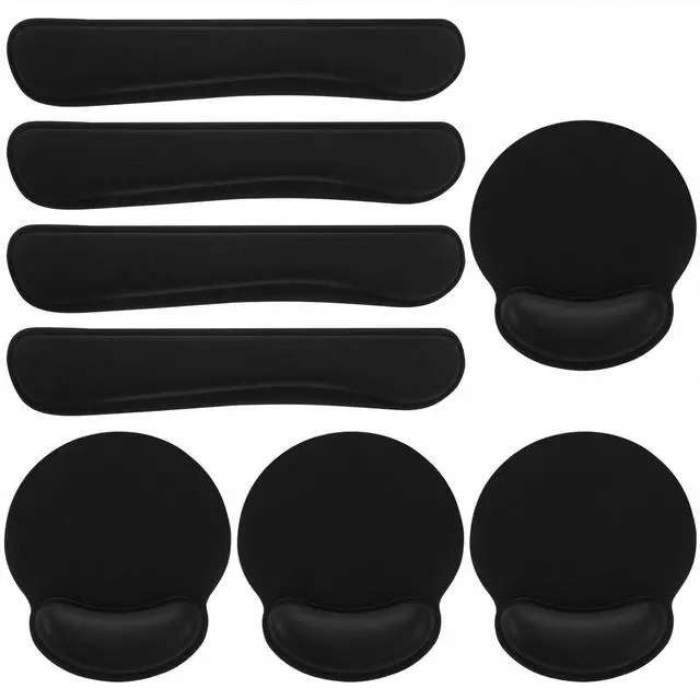 This 8-piece set includes ergonomic wrist rests and a matching mouse pad designed for enhanced comfort during extended computer use. The supportive memory foam conforms to your wrists, promoting a neutral hand position to help reduce fatigue while typing or gaming. The full-size mouse pad offers smooth, consistent tracking. Featuring a non-slip base and durable black construction, this set is a practical addition to any home office, gaming setup, or workplace, providing reliable support for a more comfortable computing experience.