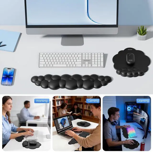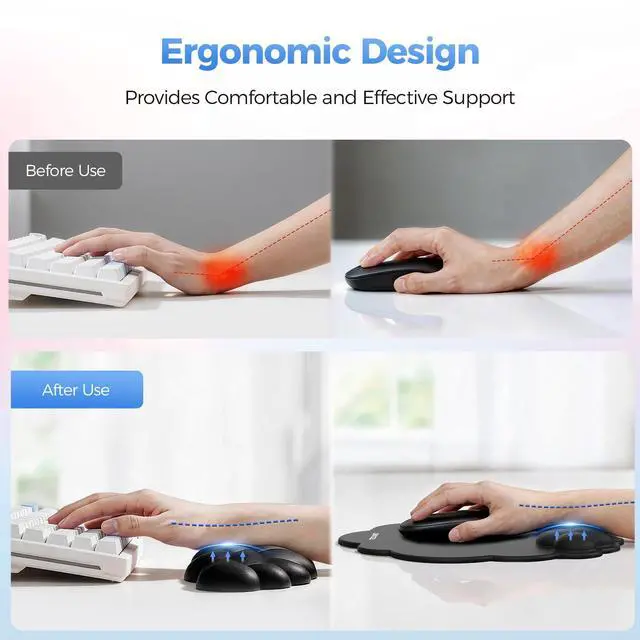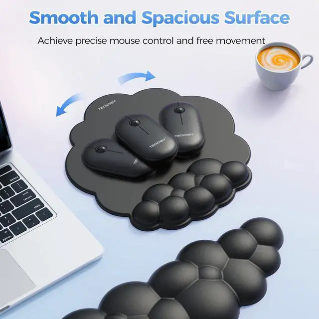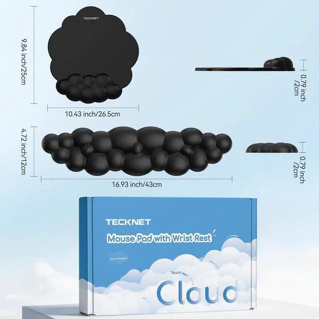 Ergonomic Cloud Shape DesignThis mouse pad and keyboard wrist rest features a sleek, cloud-shaped design, providing comfortable ergonomic support. Its unique cloud shape naturally conforms to your wrist, promoting a relaxed and natural hand posture, perfectly matching the natural curve of your wrist. The textured surface of this wrist rest for computer keyboard helps with air circulation, keeping your wrist dry even in hot and humid weather.