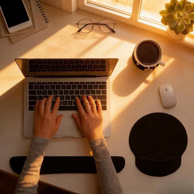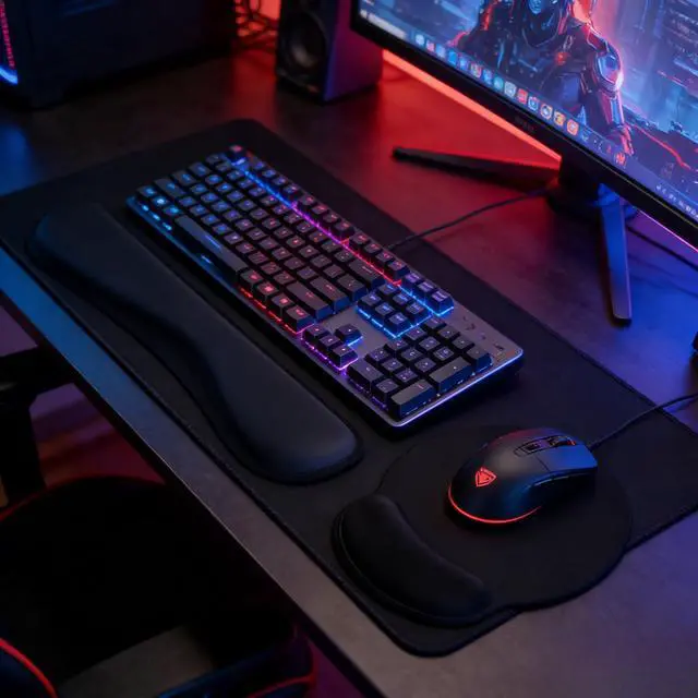 Transform your workspace into an ergonomic haven with this premium 2-pack memory foam wrist rest set. Designed for both keyboard and mouse support, these cushions provide essential comfort during long hours of typing and computer use. The gel-infused memory foam maintains its shape while delivering superior wrist support, helping to maintain proper positioning and potentially reduce strain. The non-slip base ensures these wrist rests stay firmly in place on your desk, while the comfortable design makes them perfect for office work, gaming sessions, or laptop use. These wrist supports are thoughtfully crafted to help those experiencing discomfort from extended computer use or those looking to prevent potential wrist strain. The set includes both a keyboard wrist rest and a matching mouse pad wrist support, offering a complete solution for your desktop comfort needs.