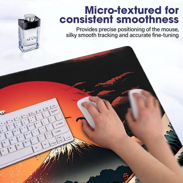 Perfect Fit for Your Entire Workspace: This ultra-large gaming mat (31.5" x 15.7" x 0.07") provides a unified, high-performance surface for your mouse, keyboard, and other essentials. Its spacious layout reduces clutter and ensures smooth, consistent tracking, directly enhancing your gaming precision and office productivity.