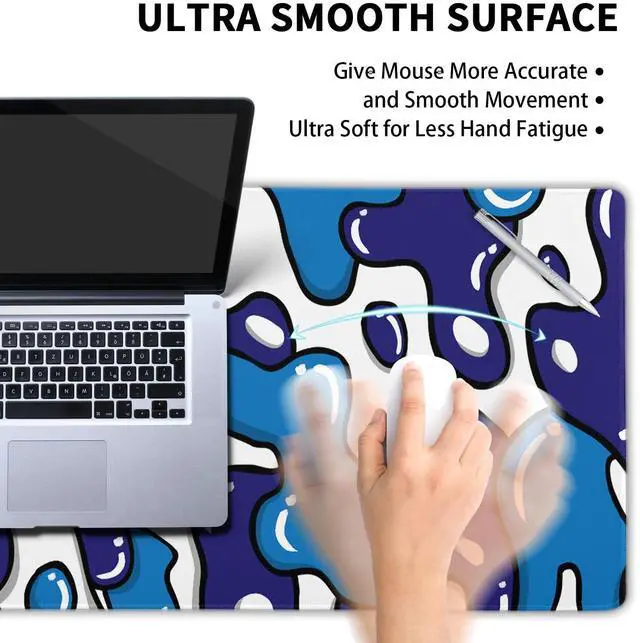 Perfect Desktop ProtectorOur gaming mouse pad blue with smooth stitched edges, which can effectively prevent fray and degum. Adopts superior printing technology, enhances the aesthetic and lifespan of the mouse pad. The mousepad is good at preventing your desk from scratches, stains, spills, heat, scuffs and other accidental damage, it is a great decor for your home table, writing pad, platform protection mat and office desk.