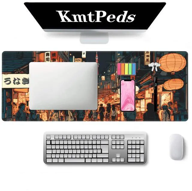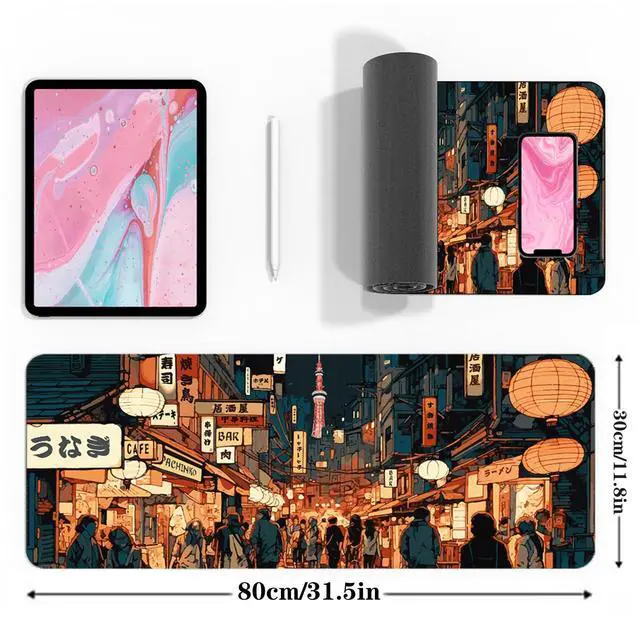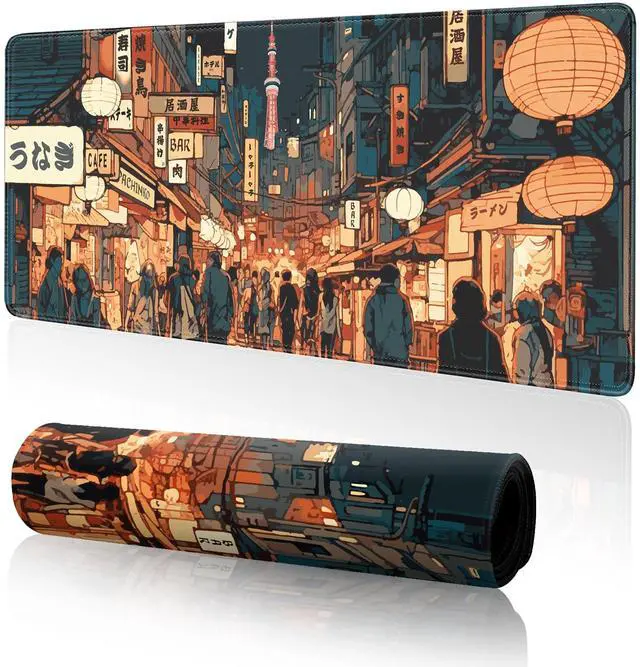 Japanese Street Gaming Mouse Pad Large, Anime Mouse Pad Gaming Mouse Mat Desk Pad ,31.5 x 11.8 Desk Mat Anime Mouse Pads for Desk, Extended Kawaii Keyboard MousePad with Non-Slip Base and Stitched Edge