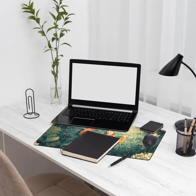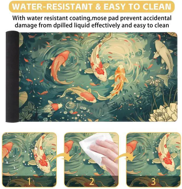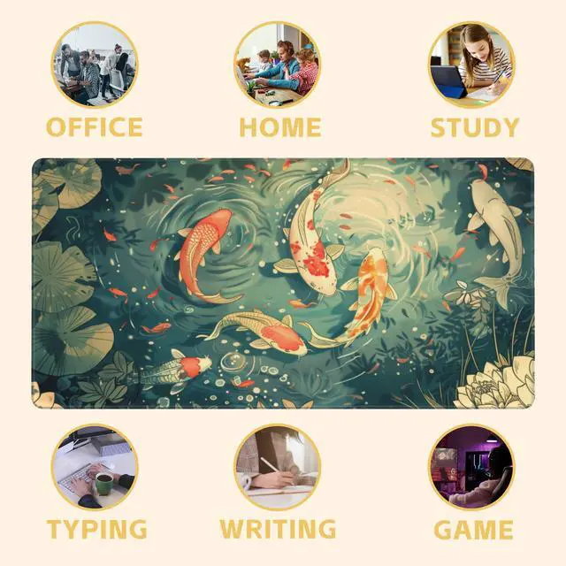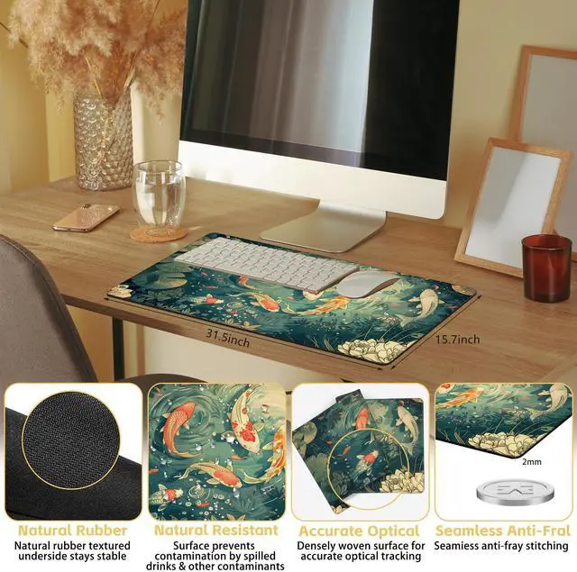 Extended Size Desk Mat: This Japanese Koi desk pad measures 31.5 x 15.8 in , which is large enough to accommodate your laptop, keyboard, mouse and more. Fits your desktop perfectly and provide perfect movement space