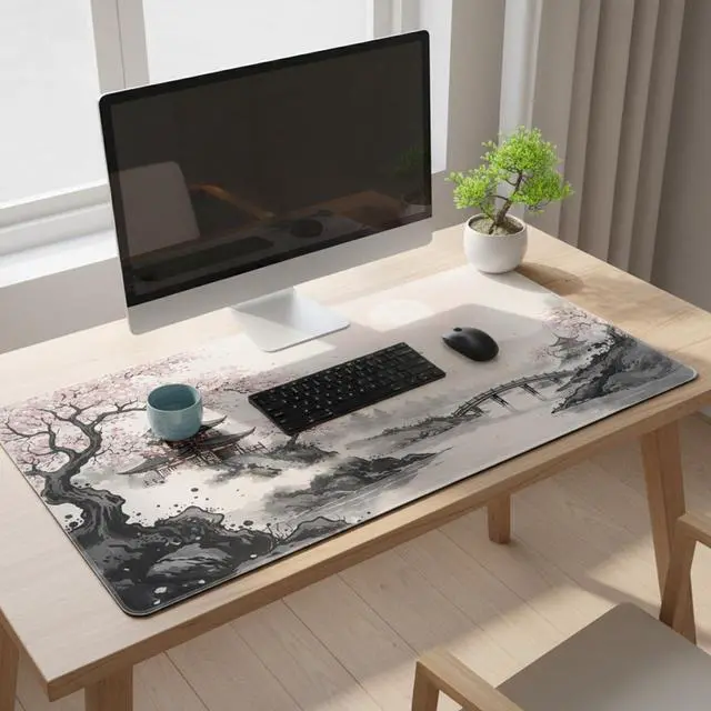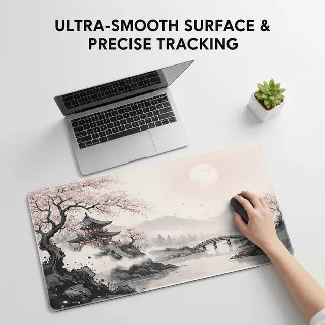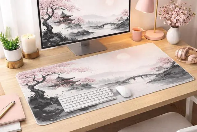 Upgrade your workspace with this XL extended desk mouse pad designed to combine everyday performance with Japanese-inspired aesthetics. Measuring 31.5 x 15.7 inches, this large mouse pad for desk offers generous room for your keyboard, mouse, laptop, and desk accessories, helping you create a clean and organized desktop for work, study, or casual gaming. The smooth fabric surface allows your mouse to glide effortlessly, providing consistent speed and reliable control for both office tasks and gaming use. Whether you are using an optical or wireless mouse, this gaming mouse pad delivers a comfortable and responsive experience throughout the day. The waterproof desk mat surface makes it easy to handle small spills and keeps your desk protected with simple wipe-clean maintenance. Built with a non-slip rubber base, this desk pad for keyboard and mouse stays firmly in place on various desktop surfaces, offering stable support during long work sessions or gaming setups. Reinforced stitched edges enhance durability and help maintain the shape of the desk protector mat, ensuring long-lasting use without fraying or curling. Inspired by Japanese cherry blossom artwork, this pink mouse pad adds a calm and elegant touch to your workspace. It functions not only as a practical gaming desk mat, but also as stylish desk decor that complements home office setups, study rooms, and modern gaming spaces. This Japanese mouse pad also makes a thoughtful choice for those who appreciate cute desk accessories, anime-inspired decor, or aesthetic gaming accessories.