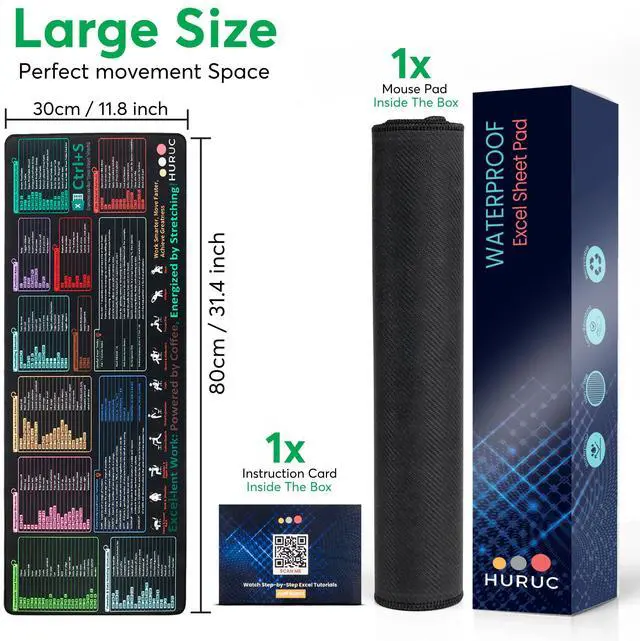 | Included Items | Whiteboard, 3 markers, a duster, built-in tray | Whiteboard, 3 markers, a duster, built-in tray | Mouse pad with Excel formula layout | DIY kit with LED lights & assembly pieces |