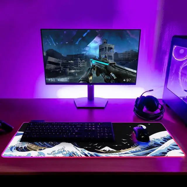Featuring A Convenient Non-Slip Rubber Backing,Kanagawa Surfing Extended Mouse Pad Stays In Place While In Use, Keeping Your Mouse On Track To Avoid Annoyance,Excellent material,So That The Mouse pad Has Accurate Sensitivity, for Your Mouse in The Fierce Game Competition Escort