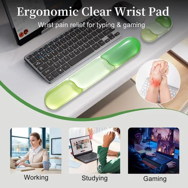 Ergonomic Clear Gel for WristThis gel keyboard wrist pad provides perfect ergonomic support for your wrist, fitting snugly around it to deliver ultimate comfort and support. Using our computer wrist support can effectively relieve wrist discomfort and pain, protect your wrist during long typing or gaming