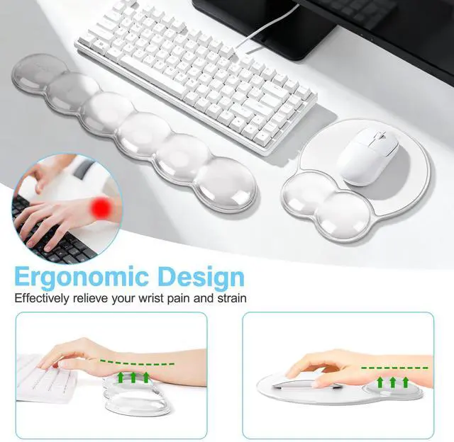 • This wrist rest for keyboard and mousepad set is ergonomically designed with soft silicone material. Efficient for easy typing & pain relief. This wrist pad set will provide soft support to relieve pressure and pain of your wrist, keep your wrist in a natural and comfortable state