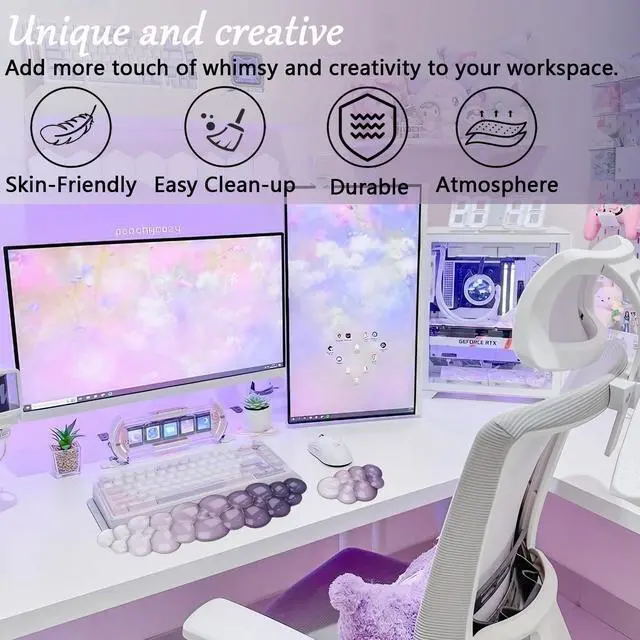 This cute ergonomic gel mouse wrist support and keyboard wrist rest set features a one-of-a-kind cloud design that adds a touch of elegance to your workspace.This new type of keyboard resting wrist pad can help you relax while studying and working,playing games. It's perfect as a companion for work, study, and office desk accessories. It is a must-have home office accessory for people who often use computers, perfect for offices, computer desktops, studying, typing and gaming.Suitable for office workers, game players, writers, students, editors, designers, and more.
