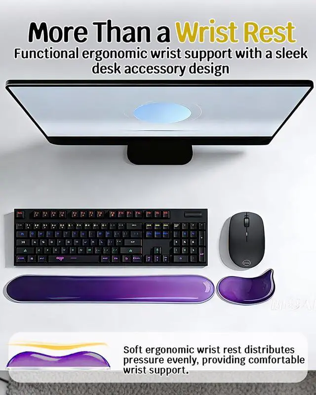 Ergonomic Wrist Rest Set for Keyboard and Mouse This keyboard wrist rest and mouse pad with wrist rest set provides comfortable support for your wrists during typing and mouse use. The ergonomic design helps maintain a natural wrist position, reducing strain and fatigue during long hours of work, gaming, or studying.
