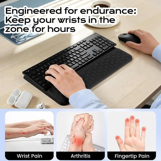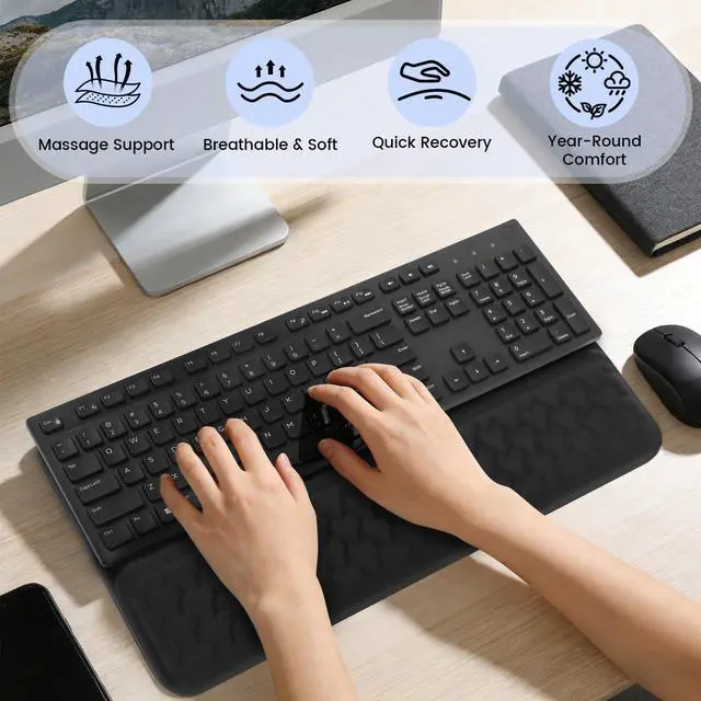 3D Massage Texture for All-Day ReliefThe surface features scientifically designed 3D massage bumps. These gentle acupressure points stimulate circulation and effectively soothe wrist tension and fatigue during long typing sessions, helping your wrists stay relaxed and comfortable.
