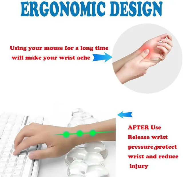 Easy to clean and waterproofSoft gel wrist pads won't collect dust like other foam and cloth-based cushions, very easy to clean. Simply wipe with a damp cloth or towel to keep it like new, no odor, reliable to use, slow to bounce back and keep its shape.