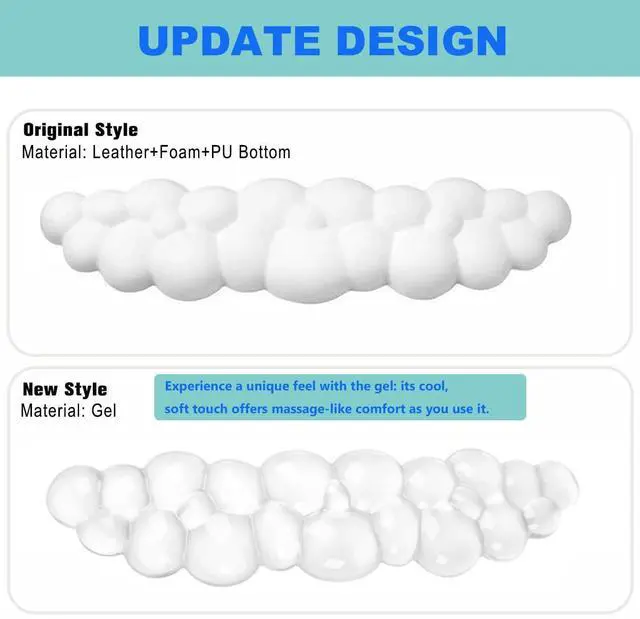 Ergonomic cloud shaped designThe special cloud-shaped design perfectly fits the wrist and palm, providing a soft and comfortable touch from the clouds. It instantly relieves pressure on your wrist and arm as if you are on a cloud. The concave-convex surface design is breathable and comfortable, preventing sweating.