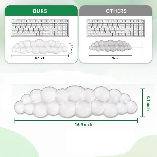 Anti slip baseThe base of the Cloud Keyboard Wrist Pad is made of non-slip natural rubber, which is safe and odorless. It can be firmly fixed on the desktop to prevent sliding or accidental movement on the desktop, in addition, the gel has a cooling effect to maintain a comfortable temperature.
