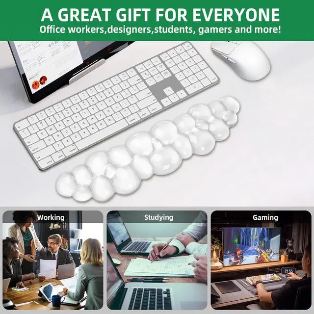 Gel Cloud Keyboard Wrist Rest, Ergonomic Wrist Support and Arm Support Keyboard Rest for Typing Pain ReliefSuitable for Office/Computer/Laptop/Gaming (Transparent Keyboard White)