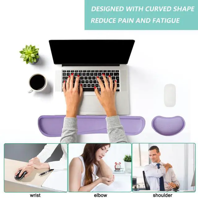 Keyboard Wrist Rest Mouse Wrist Support Set, Memory Foam Wrist Rest Pad for Computer Laptop Keyboard Mouse, Ergonomic Wrist Cushion Support for Typing Pain Relief, Gaming Home Office, Purple