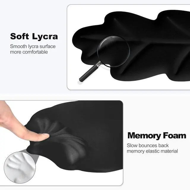 Ergonomic Leaf-Shaped DesignOur Lauspuck mouse pad and keyboard stand features a unique Leaf-shaped design, its spacious curved shape provides more space and support for your wrists and hands, allowing you to control your mouse and keyboard more easily and increase your work efficiency. The soft memory foam pad will continuously support your wrist, relieving wrist and shoulder pain and stiffness, and effectively protecting your wrist from the painful syndrome of overuse.