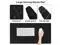 The set includes a large gaming mouse pad, keyboard wrist rest, mouse wrist rest support, and a coaster.