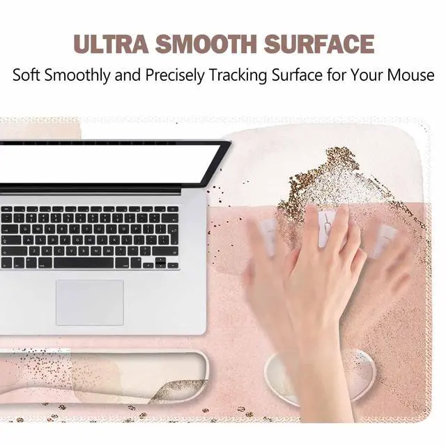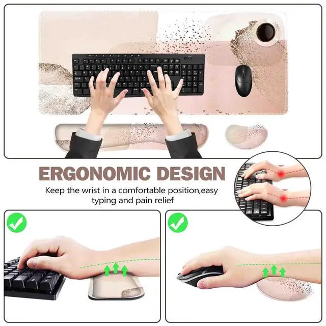 Extended Gaming Mouse Pad, Memory Foam Ergonomic Keyboard Mouse Wrist Rest Support Set, Large Desk Mat with Stitched Edges, Non-Slip Base Mousepad for Home Office Game Study, Pink Gold