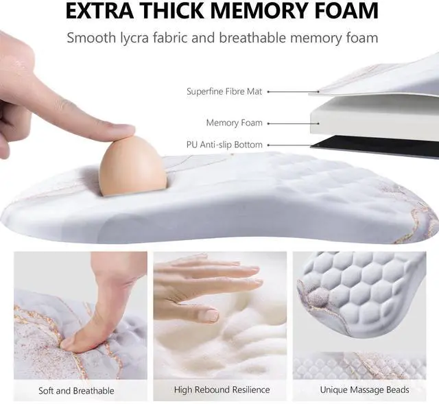 we take comfort to the next level with our Massage Design. Our desk mouse pad and keyboard wrist rest feature a unique bumpy massage bead design. This innovative feature promotes healthy blood flow and improves air circulation around your wrists, preventing discomfort during those long work sessions or intense gaming marathons. Experience a superior level of comfort that ordinary flat wrist supports simply can't match.