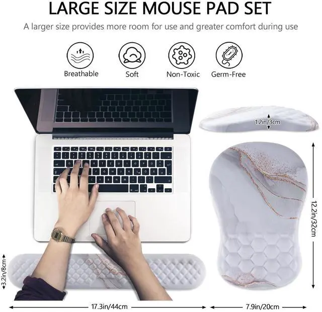 Introducing our revolutionary 2-in-1 Ergonomic Support for your workspace! Say goodbye to discomfort and hello to enhanced productivity and comfort with our carefully crafted mouse pad wrist support and keyboard wrist rest set.