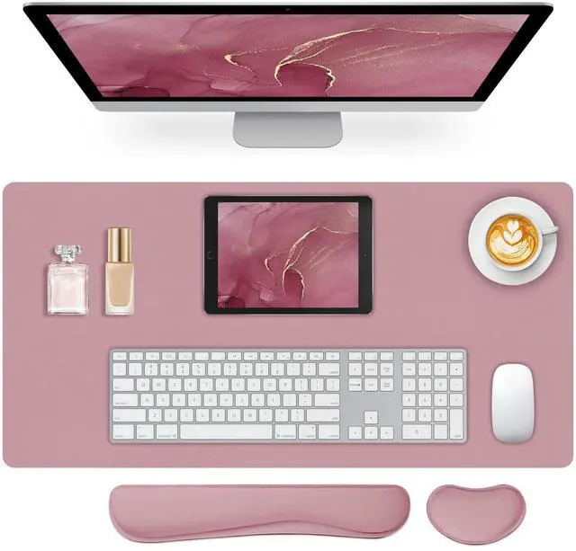 Mouse Pad and Keyboard Wrist Rest, 3-in-1 Large Keyboard and Mouse Pad Set, Ergonomic Wrist Rest for Computer Keyboards, Non-Slip Desk Mat Protector for Women (Purple Pink, 31.5" X 15.7")