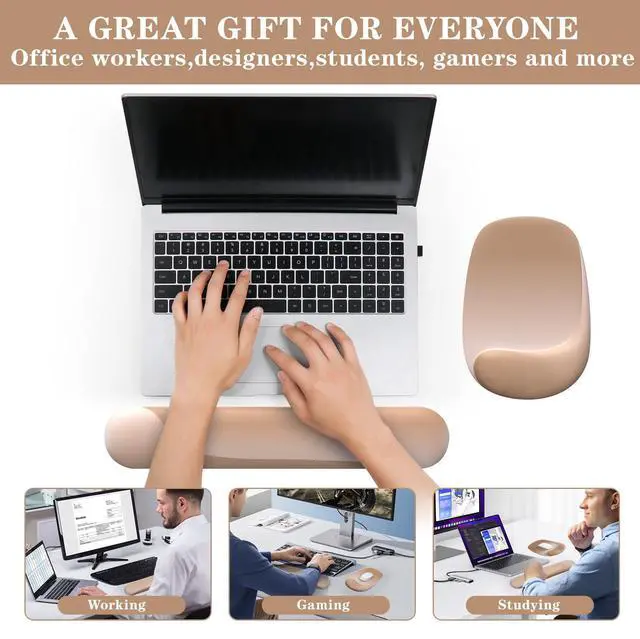 Super Non-Slip Base: The bottom of mouse wrist rest and wrist pad for keyboard adopts anti-skid natural rubber material. It can firmly grasp the desk to prevent sliding, enhancing comfort and focus during work or gaming without frequent adjustments.