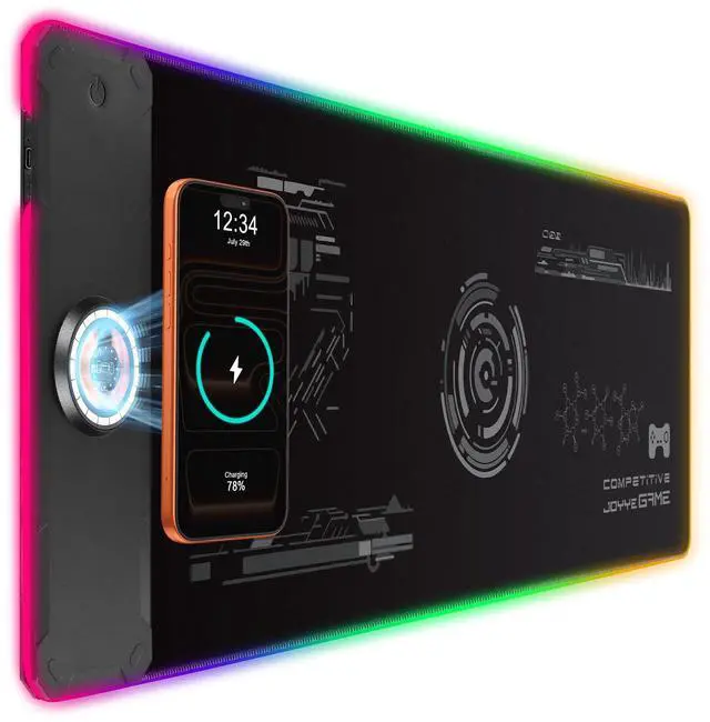 Elevate your gaming battlestation with our all-in-one mouse pad engineered for serious gamers. The massive 31.5"x11.8" surface (800x300mm) delivers unrestricted movement space for low-DPI gameplay while the integrated wireless charger magnetically snaps magsafe-compatible phones/earbuds at 15W max output.