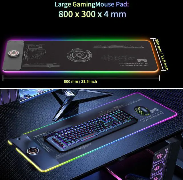 Extra Large Gaming Mouse Pad with 15W Magnetic Wireless Charger & RGB Lights - 800x300mm Non-Slip Surface, 14 Color Modes for PC Gamer Desk Setup
