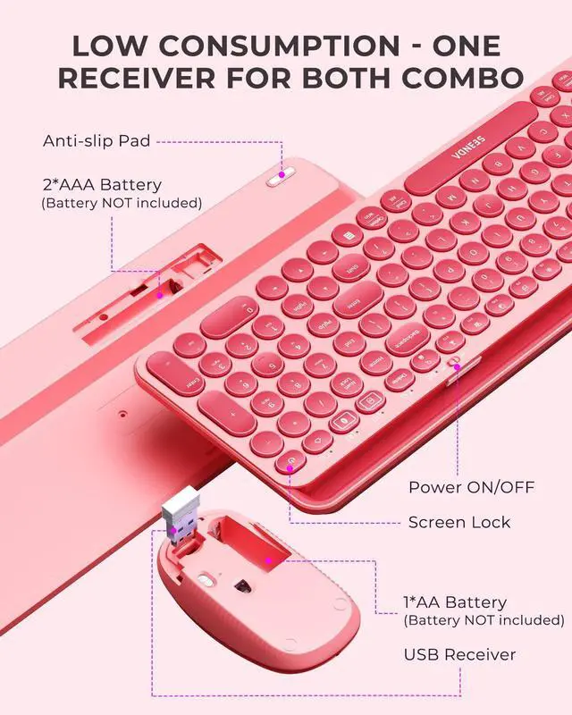 • Full-Size Compact Keyboard with Number Pad & Hot Keys -- This cute, stylish keyboard comes with a numeric keypad, 15 handy hotkeys and FN lock, featuring all essential keys for easier, more comfortable typing. Its industry-standard layout includes special hotkeys: a lock key for screen locking and an FN lock key to customize F1-F12 as media or function keys, boosting workflow and productivity for efficiency-focused female office workers.