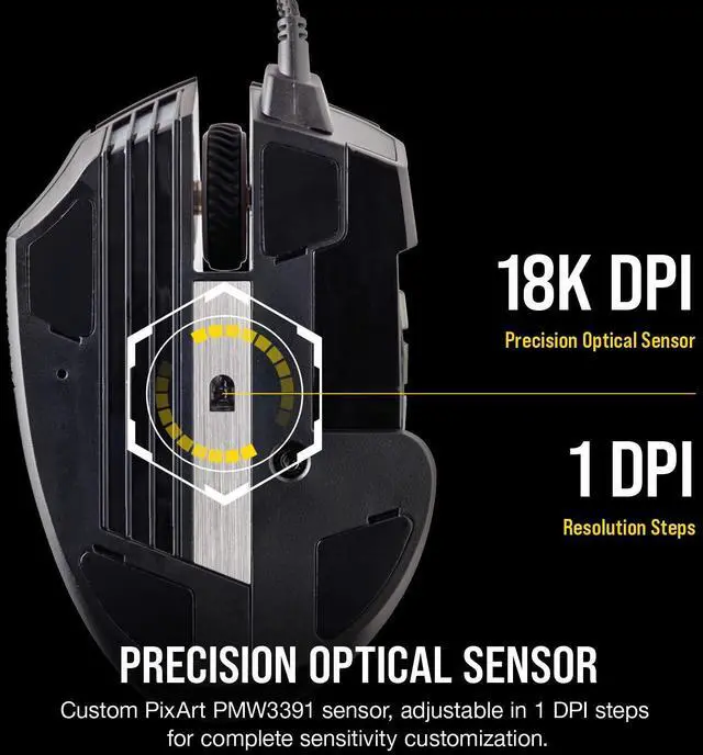 Equipped with a custom PixArt PMW3391 native 18,000 DPI optical sensor, adjustable in 1 DPI resolution steps, for highly accurate and customizable tracking.