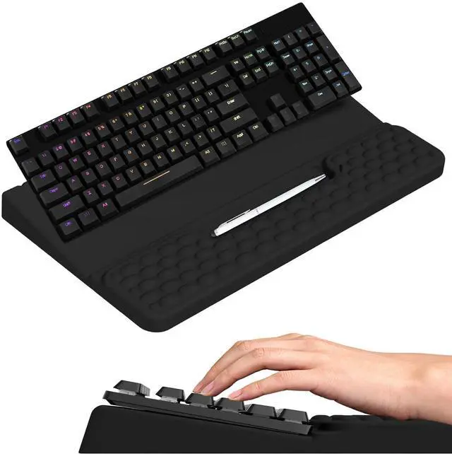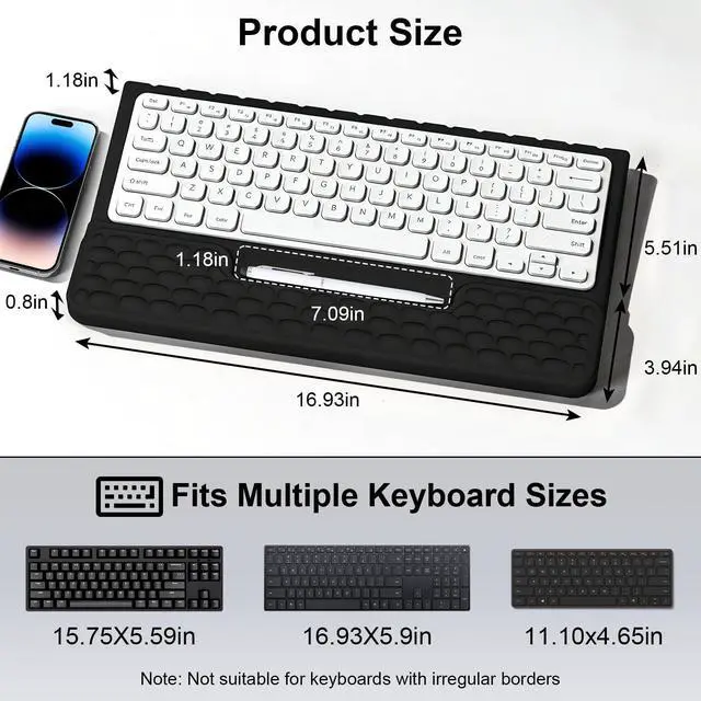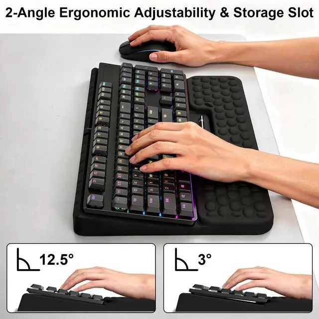 Beyond delivering cloud-like cushioning to ease elbow strain during long work or gaming hours, it features a built-in storage compartment that keeps your small desk essentials organized—say goodbye to cluttered desktops by tucking away USB drives, earbuds, paper clips, and more.Non-slip, sturdy, and space-saving, it fits any keyboard and transforms your messy desk into a neat workspace.