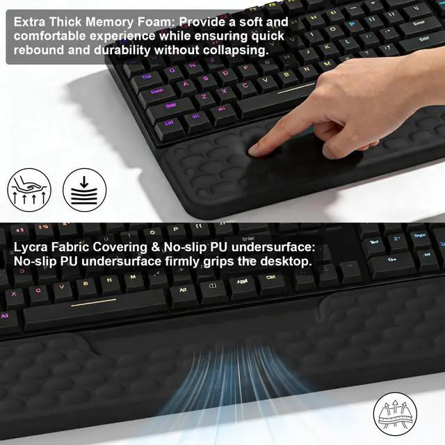 It features premium memory foam cushioning that delivers steady, pressure-free support to your elbows and forearms throughout marathon gaming sessions. The non-slip base adheres firmly to your gaming desk, so it stays put even during high-stakes matches or fast-paced keystrokes.