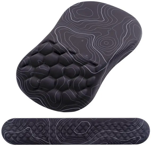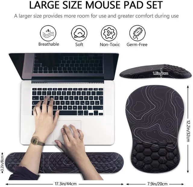 Introducing our revolutionary 2-in-1 Ergonomic Support for your workspace! Say goodbye to discomfort and hello to enhanced productivity and comfort with our carefully crafted mouse pad wrist support and keyboard wrist rest set.