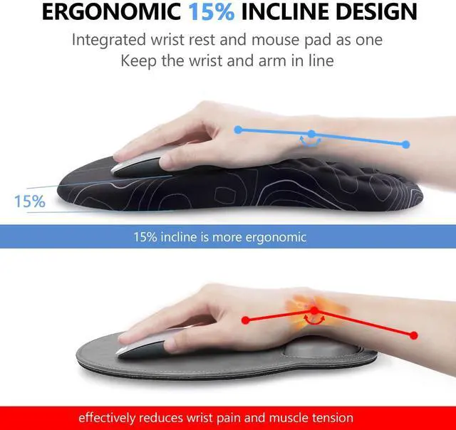 Crafted with 100% memory foam, our wrist supports are designed to provide long-lasting comfort and support that won't deform over time, unlike gel alternatives. The 15-degree slope is a game-changer, ensuring proper wrist alignment to reduce pressure and alleviate the risk of carpal tunnel pain. Whether you're a dedicated gamer, an office professional, or a creative mind, our ergonomic support system is a must-have for anyone spending extended hours at their desk.