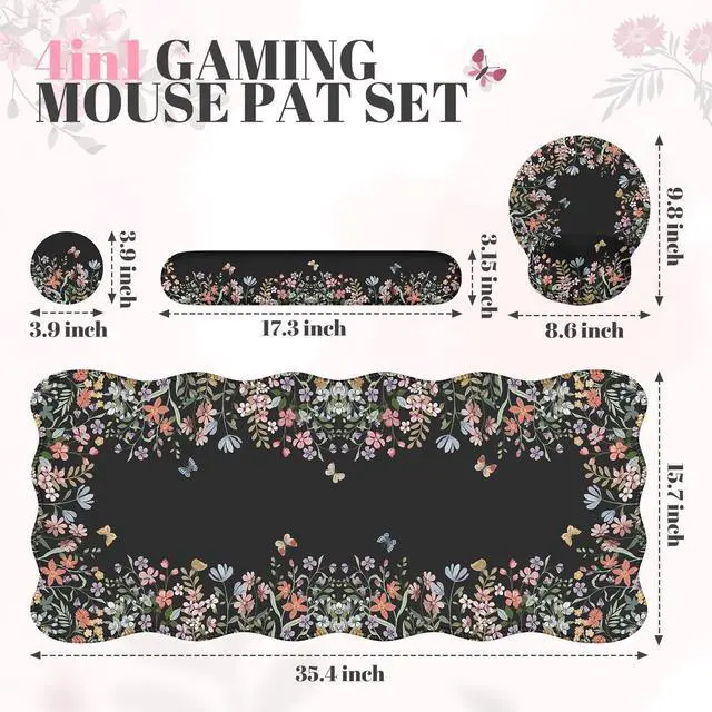 • Large Mouse Pad Size: Our large mouse pad and wrist rest set includes XXL gaming mouse pad (35.4''x15.7''), keyboard wrist rest(17.2''x3.3''), mousepad wrist rest(8.27''x9.25''), cup coaster(3.9x3.9''). This extended desk mat for keyboard and mouse is large enough to fit your mouse, gaming keyboard, and other desk items
