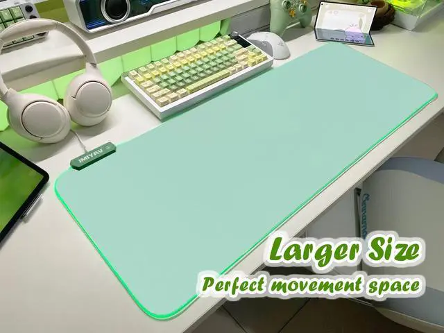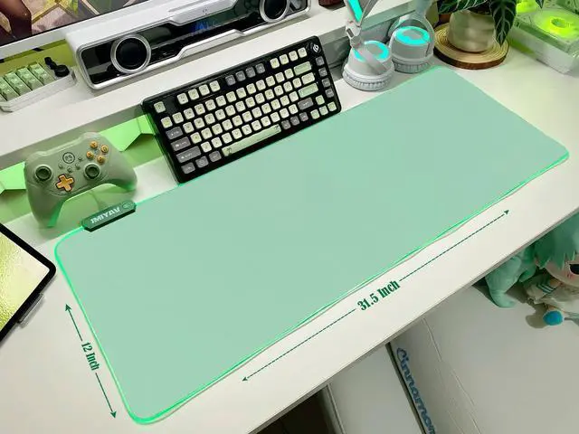 Green RGB Gaming Mouse Pad 31.5 x12 Inch PC XL Large Glowing Led Light Up Desk Pad Non-Slip Rubber Base Computer Cute Mousepad Mat Desk Accessories Gaming Setup