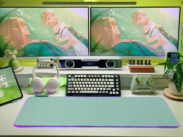 Green RGB Gaming Mouse Pad 31.5x12 Inch PC XL Large Glowing Led Light Up Desk Pad Non-Slip Rubber Base Computer Cute Mousepad Mat Desk Accessories Gaming Setup
