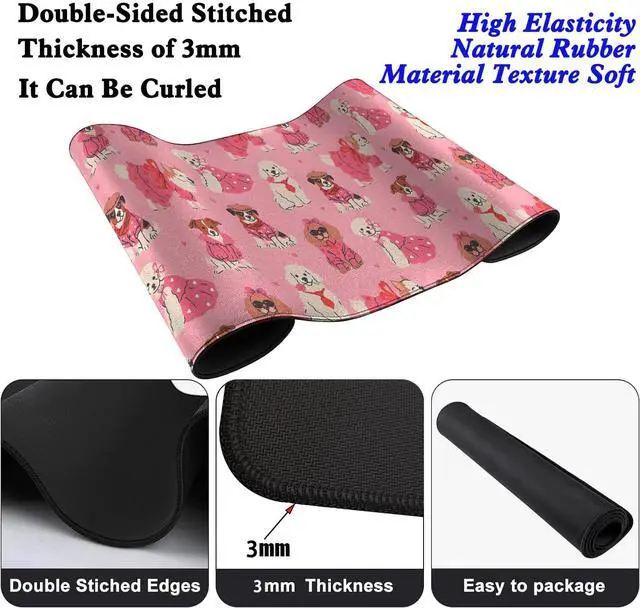 This mouse pad measures 31.5 inches in length, 11.8 inches in width, and 0.12 inches in thickness, providing ample space for both mouse movement and keyboard placement.
