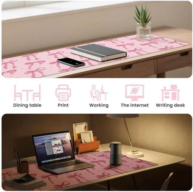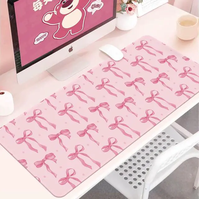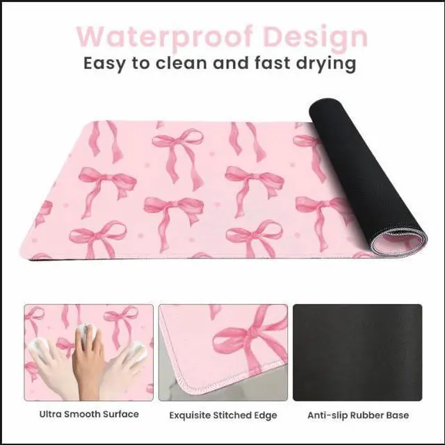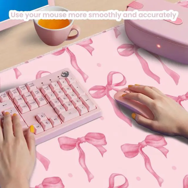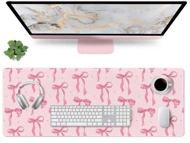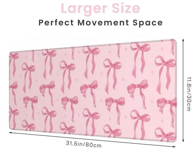 31.5 x 11.8 inch Large Pink Mouse Pad, Cute Desk Mat Bows Desk Pad, Non-Slip Rubber Base Gaming Mousepad Desktop Decor for Girls Women