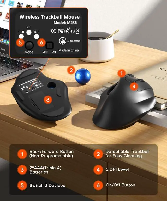 [Ergonomic Design] - Relaxed Hand and Arm, Precision-engineered, it reduces hand fatigue with thumb controls instead of wrist/arm movements.Let the easy and smooth thumb control help you reduce your muscle stress. The optimal angle of the trackball mouse allows you to keep your palm in a natural position for all-day comfort.