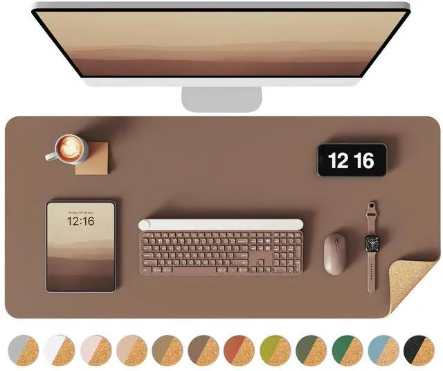 Leather Desk Pad Protector with Natural Cork