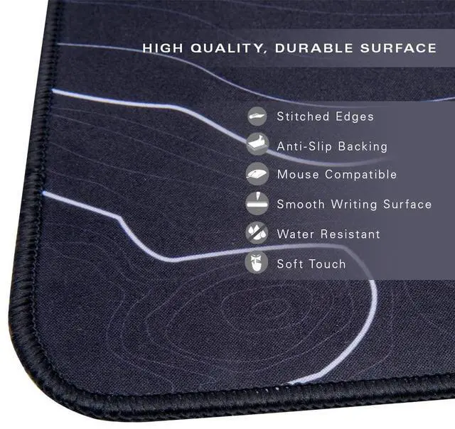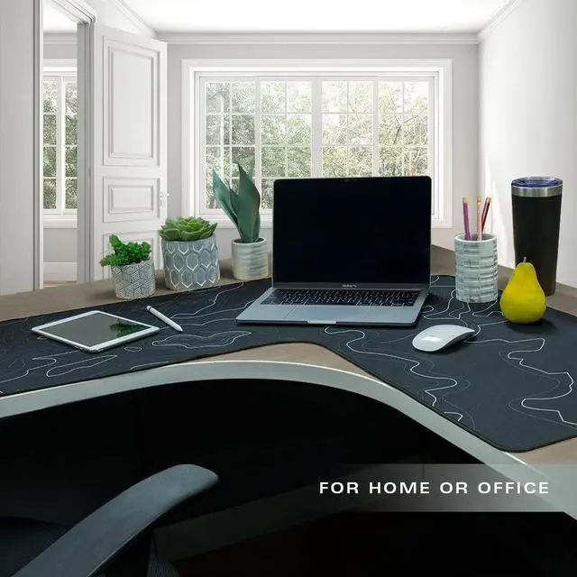 Transform your workspace with this extra large mouse pad, designed specifically for corner desks. With ample coverage for your keyboard, mouse, office supplies, and extra writing space, this computer mat for desk offers a practical and stylish solution for all types of workspaces. Ideal for gaming setups, this desk mat ensures that your work or play area stays organized and efficient. The rubberized base prevents the mousepads for desk from shifting, even during long work sessions, ensuring a stable, non-slip surface. This large desk mat offers reliability and comfort, keeping your workspace steady and free from distractions. Durability and ease of maintenance come with the desk mat's stain-resistant and spill-proof features, making it a breeze to clean and maintain. The smooth surface ensures your mouse glides effortlessly, making your tasks easier and more efficient. With a modern L-shaped design, this mousepad enhances the aesthetic of your desk while offering all the functionality you need. Whether for gaming, studying, or professional tasks, it provides a comfortable surface for all activities. This computer mat for desk has precise stitching along the edges that ensures long-lasting use, offering a smooth, comfortable experience every day.