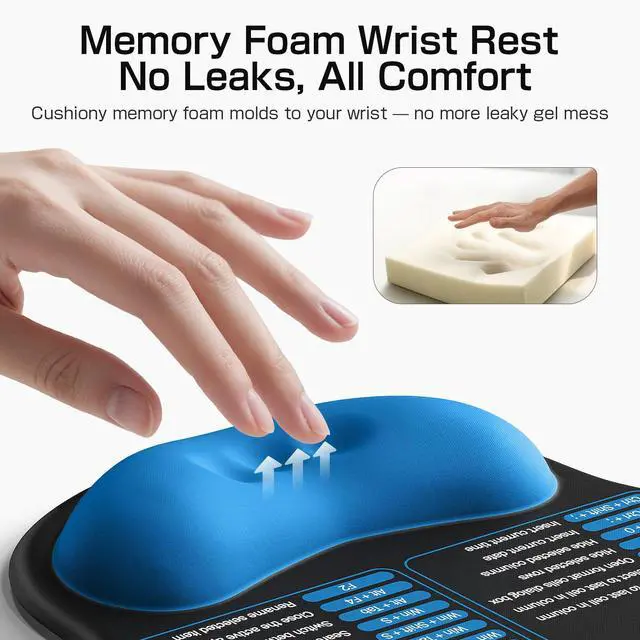Unlike gel-filled wrist rests that can leak or harden over time, our wrist support is made of slow-rebound memory foam that gently conforms to your wrist's natural shape, offering long-lasting comfort and stability without the mess or risk of leakage